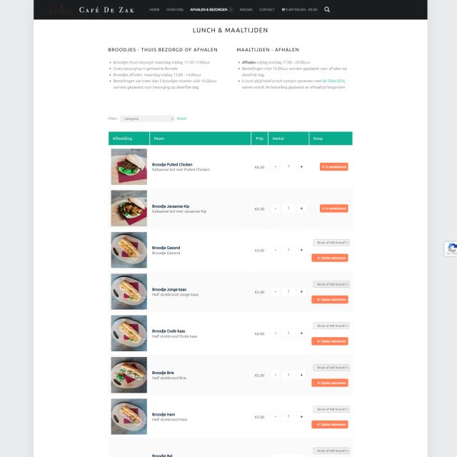 With the advent of Corona, Café de Zak could no longer serve customers on site so decided to pursue a take away and delivery service for their lunches and dinners. They came to me to help with the e-commerce side of the operation after WooCommerce had been installed on their site. Unfortunately the site utilises an older theme which did not support WooCommerce, so I came on board to customise the styling, make the theme Woo-ready and then to set up the store.